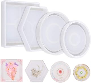 Cyleibe 4 Stück Untersetzer Silikonformen, DIY Silikonformen Epoxy Sechseckige runde quadratische Untersetzer Kristall Epoxy Silikonform Geeignet für Harzguss-Kit Betonharzguss