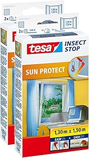 2 Stück tesa Fliegengitter für Fenster inkl. Sonnenschutz, beste tesa Qualität, 1,3m x 1,5m