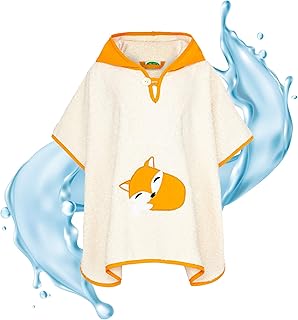 Smithy® Kinder-Badeponcho aus Baumwollfrottee – Schadstofffrei und Ökotex zertifizierter Baby Badeponcho – weiß orange mit Fuchs