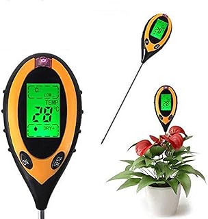 Boden-Messgerät, 4-in-1 Boden-Tester Feuchtemessgerät PH-Stufen Temperatur Sonnenlicht Lux Intensity Survey Instrument mit großem Hintergrundbeleuchtung LCD-Display für Garten Bauernhof Rasen Pflege