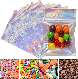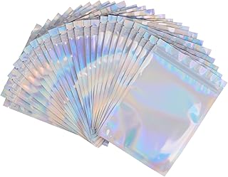 100 Stück geruchsdichte Beutel – 12,7 x 17,8 cm wiederverschließbare Mylar-Beutel, wiederverschließbar, transparent, holografisch, Regenbogenfarben