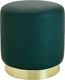 Hocker aus Kunstleder mit Metall Basis Eleganter Fußhocker Lederimitat Pouf Sitzhocker Schminktisch Dekohocker Puff Fußbank Gepolstert Polsterhocker Rund für Wohnzimmer Schlafzimmer Flur Grün