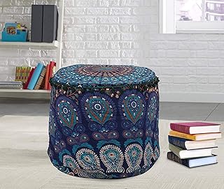 Janki Creation Handgefertigter Mandala-Fußhocker, rundes Bodenkissen, Ottoman, Wohnzimmerhocker, indischer Sitzhocker, Überwurf, großer Bohemian-Pouf (45,7 x 45,7 x 33,7 cm)