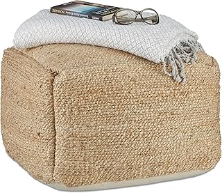 Relaxdays Hocker beige, Pouf mit Jutepolster handgewebt, eckiger Fußhocker ohne Beine und Lehne HxBxT 38x57x57 cm