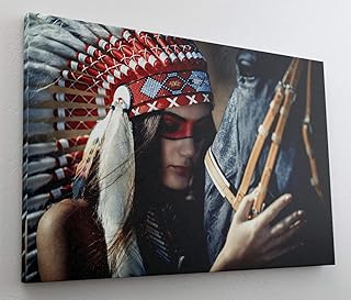 Indianer Pferd Liebe Tier Horse Feder Leinwand Bild Wandbild Kunstdruck L1052 Größe 70 cm x 50 cm