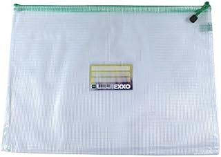 EXXO by HFP 34113 Kleinkrambeutel Mesh Bag Zipper-Beutel A3 mit Visitenkartentasche ZIPPER, 5 Stück mit grünem Reißverschluss Weiß Milky