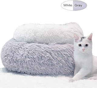 Peswety Hundebett kleine Hunde Rundes Plüsch Hundekissen Katzenbett waschbar Haustierbett für Katzen Hunde Plüsch Hundebett Hundebett mittelgroße Hunde Hundebett mit aufgesetzter Decke Grau M