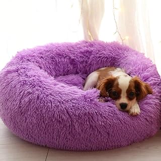 Maran Plüsch Runde Hundebett Selbstwarm Katzenbett rutschfest Hundematte mit weichem Kissen Abnehmbar Waschbar Betten für Katzen und kleine bis mittelgroße Hunde-Lila-L:80 * 80CM
