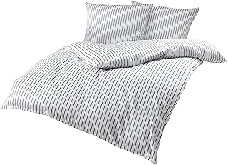 Mako Satin Bettwäsche grau weiß gestreift 200x220 + 2X 80x80 cm, 100% Baumwolle mit Reißverschluss