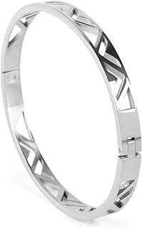 Damen Edelstahl Armreif mit dreieckigen Cutouts im Azteken Style, Clipverschluss Armband, Schmuck, 05040168