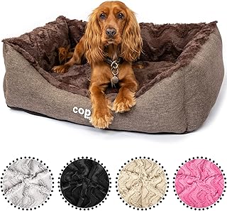 CopcoPet - Hundebett Pia Hundekörbchen Hundesofa, waschbarer Bezug mit Plüsch, Schaumstoff-Flocken oder orthopädischem Visco-Schaumstoff Gr. 80 x 60 cm, Beige