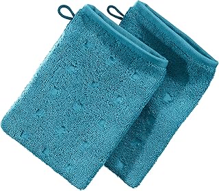 Möve Waschhandschuh 2er-Pack Quadretti Walk-Frottier Petrol Größe 15x20 cm