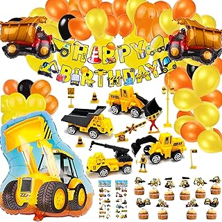 BAU Party Dekoration,Baustelle Kindergeburtstag Party Dekoration, Bagger Kindergeburtstag Deko,Happy Birthday Deko,Bagger Luftballons,Baufahrzeug Baustelle Deko,Geburtstagsdeko Jungen.