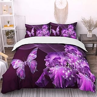 WONGS BEDDING Bettwäsche 3D Schmetterlinge Bettbezug 200×200 Bettwäsche Set 3 Teilig Bettbezüge Mikrofaser Bettbezug mit Reißverschluss und 2 Kissenbezug 50x75cm