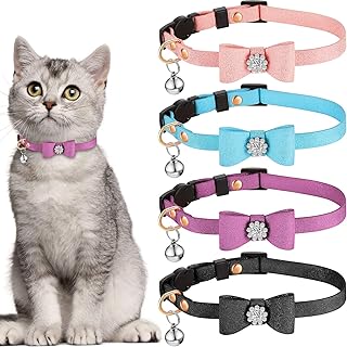 Weewooday Katzenhalsbänder mit Strasssteinen, falsche Diamanten, Fliege, Katzenhalsband, verstellbar, Sicherheitsverschluss, Haustier-Halsbänder mit Schleife, für Kätzchen, Katzen, Kätzchen, 4 Farben