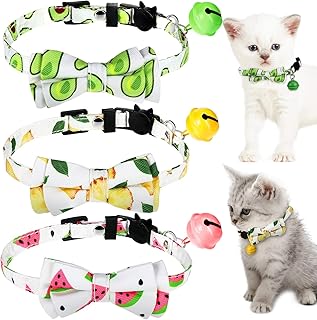 3 Stück Katzen Halsband mit Wegbrechen Clip and Glocke Einstellbare Fliege Katzen Halsband mit Wassermelone Avocado Ananas Drucke für Kätzchen und Welpen
