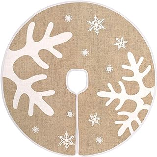 HOHOTIME Jute-Weihnachtsbaumrock, beige, 76,2 cm, Baumrock mit schwarzen großen Schneeflocken und Elchgeweih, Weihnachtsdekorationen für Weihnachtsschmuck, Baumschmuck