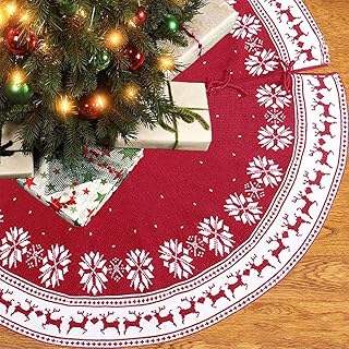 Dricar Weihnachtsbaumrock, Gestrickter Schneeflocken Elchbaumrock Weihnachtsschmuck Weihnachtsstrickbaumrock 48 Zoll großer roter Baumrock für Weihnachtsdekorationen Urlaub drinnen draußen