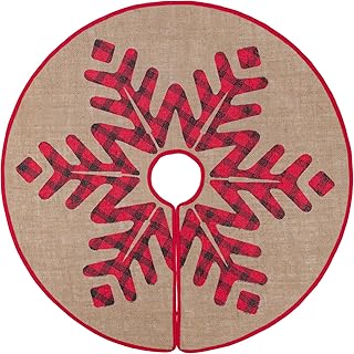 MACTING Weihnachtsbaumrock, 76,2 cm Jute-Baumrock mit roten und schwarzen karierten Schneeflocken, bedruckter Baumfußabdeckung für Weihnachtsbaum, Weihnachtsdekoration